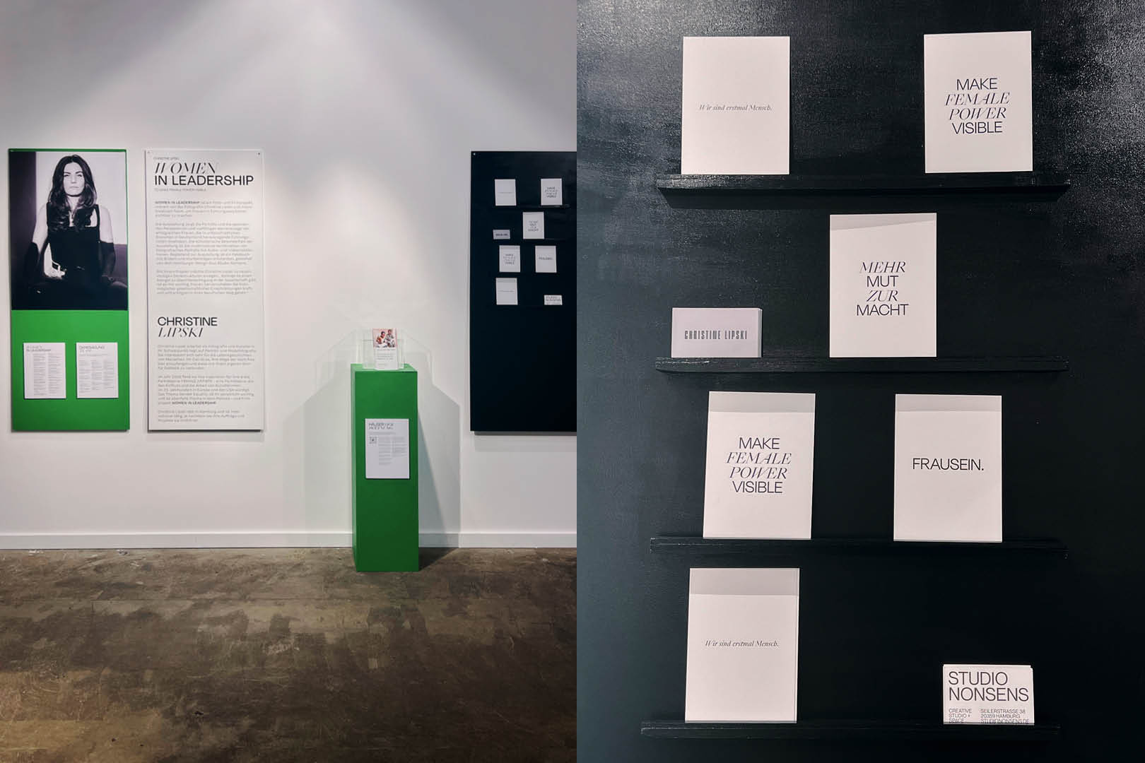 „Women in Leadership” is a photo and film project initiated by the photographer Christine Lipski and a whole creative team showing inspiring women in leadership positions with a positive influence on society – in pictures and words. We accompanied the photographer from day one with a design for the project. Giving all parts of the project from concept to the exhibition its own personality.